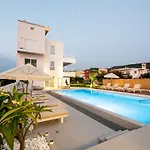 Mit Blick auf den Pool bietet die 60 m² großen Ennea Suites-Earth Suite Flámbouras auch eine Terrasse mit einem Swimmingpool.